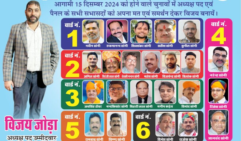 जयपुर | आगामी 15 दिसम्बर 2024 को श्री मैढ क्षत्रिय स्वर्णकार समाज का चुनाव जयपुर में होने जा रहा है जिसमे जयपुर के सभी 6…