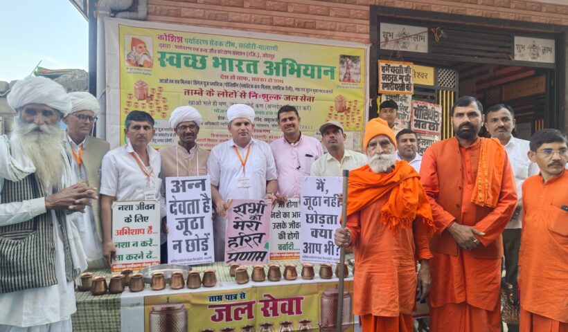 जागरूकता संदेश लिखी तख्तियां व बैनर गले में लटकाकर भोजनशाला में देते हैं संदेश पर्यावरण प्रदर्शनी लगाकर लोगों को कराते हैं तांबे के लोटों से…
