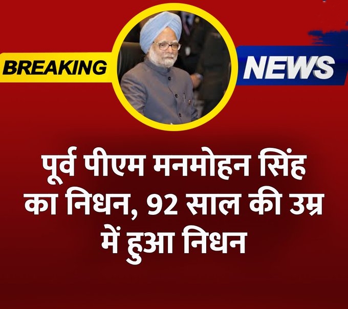 भारत के पूर्व प्रधानमंत्री डॉ. मनमोहन सिंह का 26 दिसंबर 2024 को 92 वर्ष की आयु में निधन हो गया। स्वास्थ्य संबंधी जटिलताओं के चलते उन्हें नई दिल्ली स्थित अखिल भारतीय आयुर्विज्ञान संस्थान (AIIMS) में भर्ती कराया गया था, जहां उन्होंने अंतिम सांस ली।