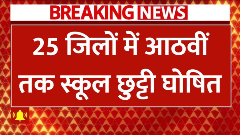 25 जिलों में कक्षा 1 से 8 तक की छुट्टियां घोषित School Holiday