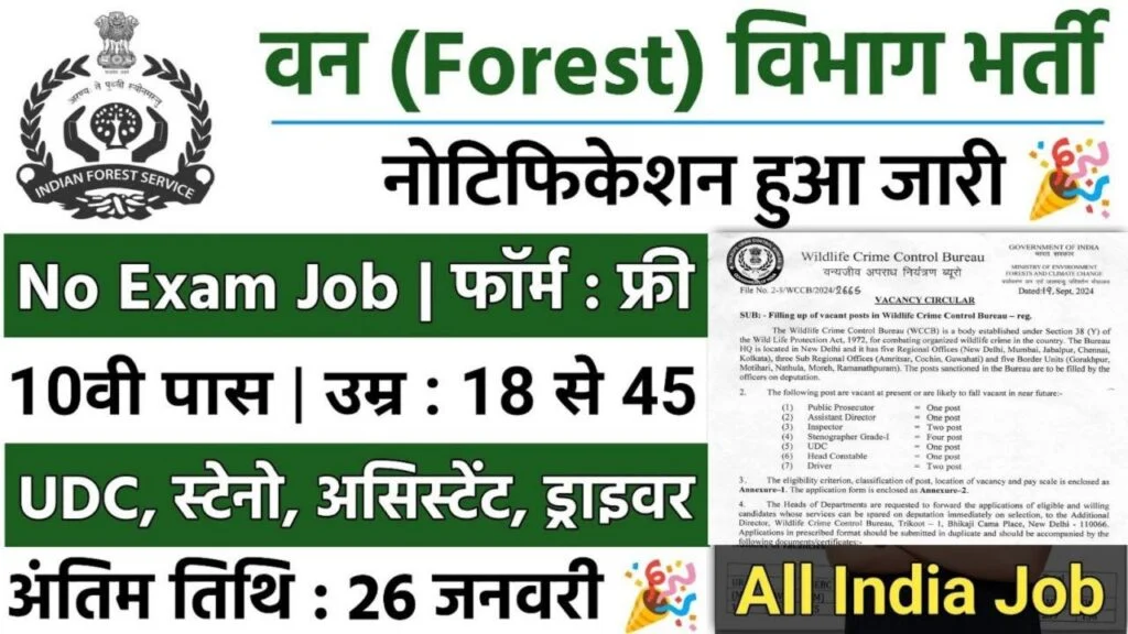 WCCB Vacancy: वन्य जीव अपराध नियंत्रण ब्यूरो भर्ती का 10वी पास के लिए नोटिफिकेशन जारी